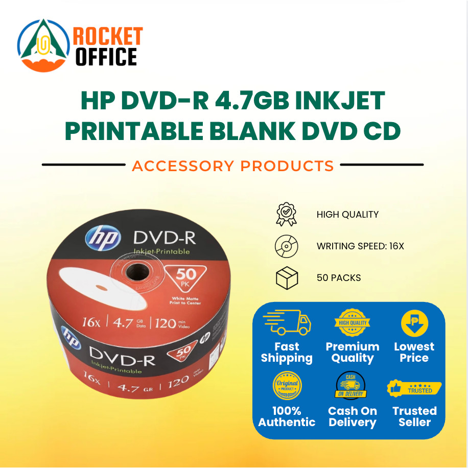 HP DVD-R 4.7GB Inkjet Printable Blank DVD CD (white)50pcs