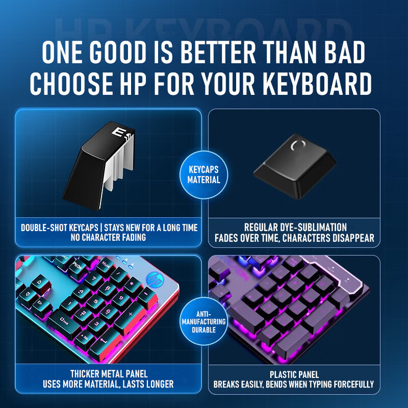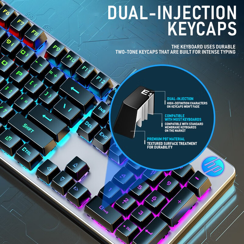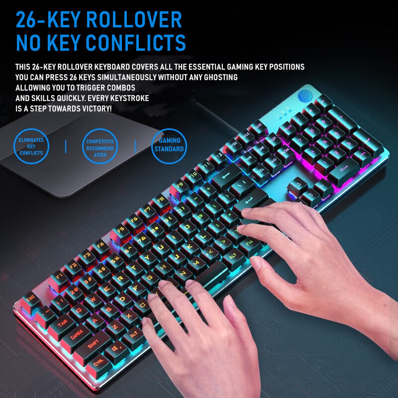 HP K500Y Mechanical Feel Wired Gaming Keyboard Dynamic Light Effect Metal Panel Colorful LED Backlit