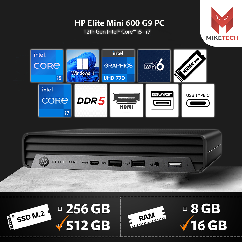 HP Pro Mini-PC 12-14th Gen Intel Core i5-i7 16-32GB RAM 256-512GB NVMe SSD Windows 11 Pro (USED)