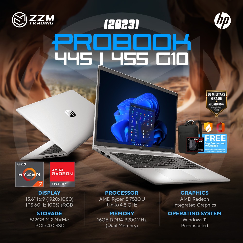 HP ProBook 455 G10 2023 R5 R7 Edition AMD Radeon Graphics 15" IPS FHD 16GB 512GB SSD