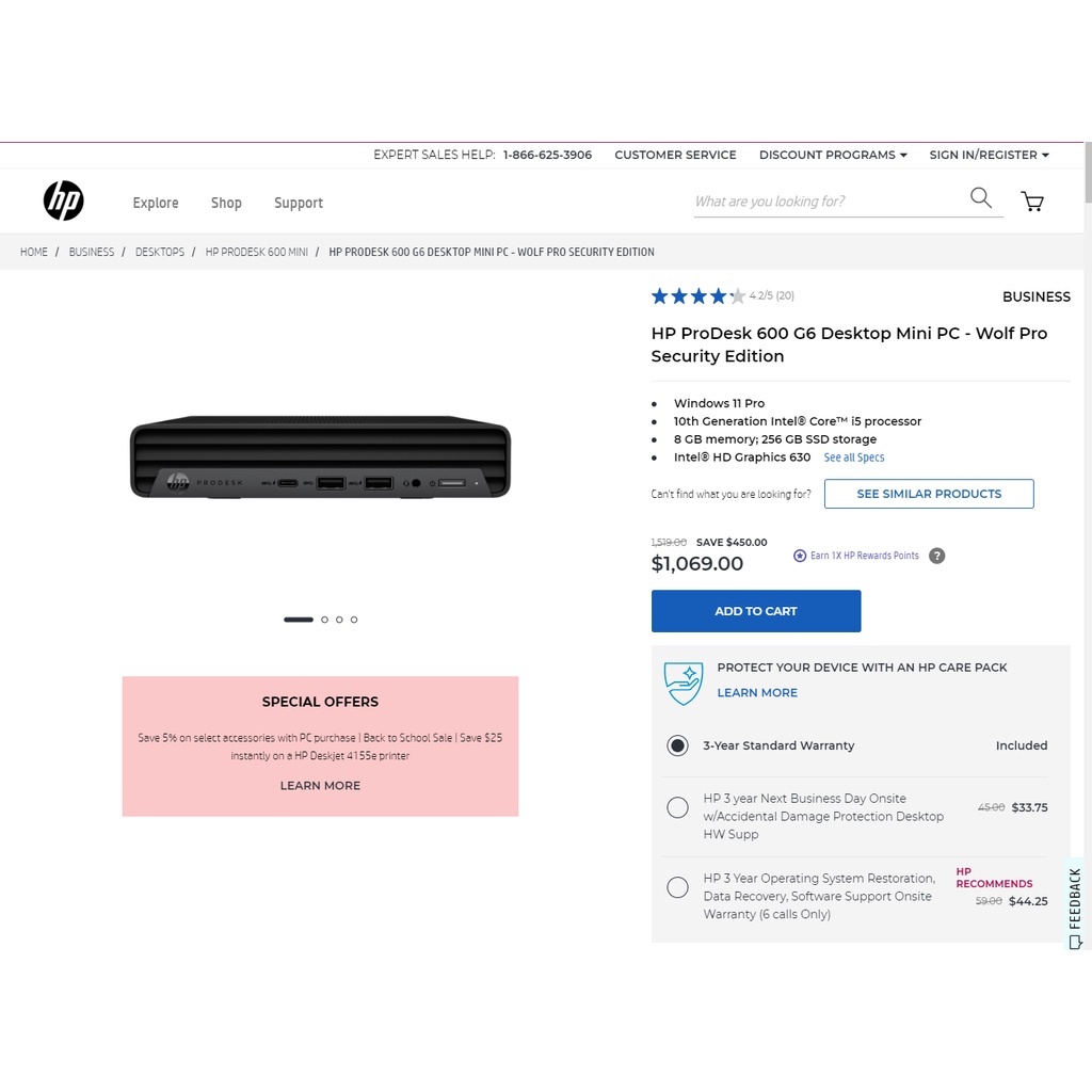 HP ProDesk/EliteDesk Mini 10th Gen Core-i5 256-512GB NVMe SSD 8-16GB RAM WiFi&Bluetot Windows 11 Pro