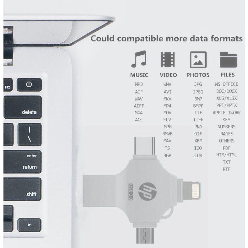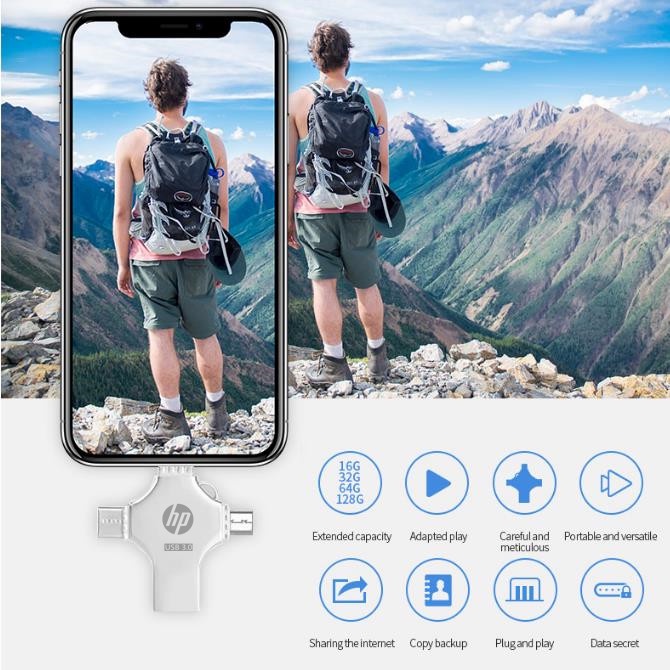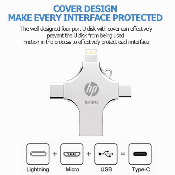 HP Usb Flash Drive 4 in 1 Otg Pendrive 512GB Usb3.0 Memory Stick For Phone External Storage Device