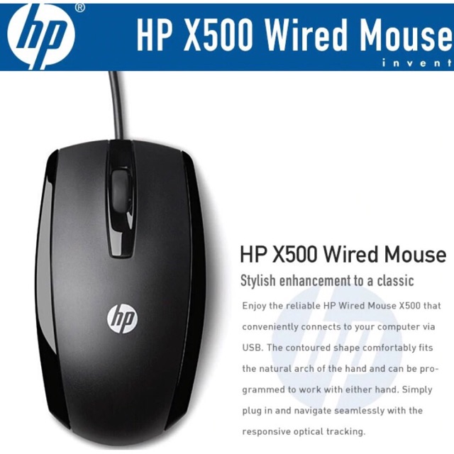 HP X500 Optical Wired USB Mouse Free one pcs mouse pad (Black)