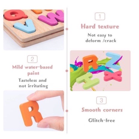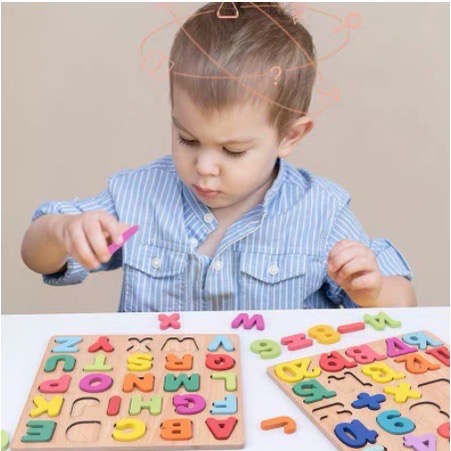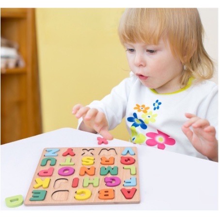 HPT ABC Alphabet Digital Puzzle Wooden Toys Kid Number Letter shape Matching Jigsaw Board 20*20cm