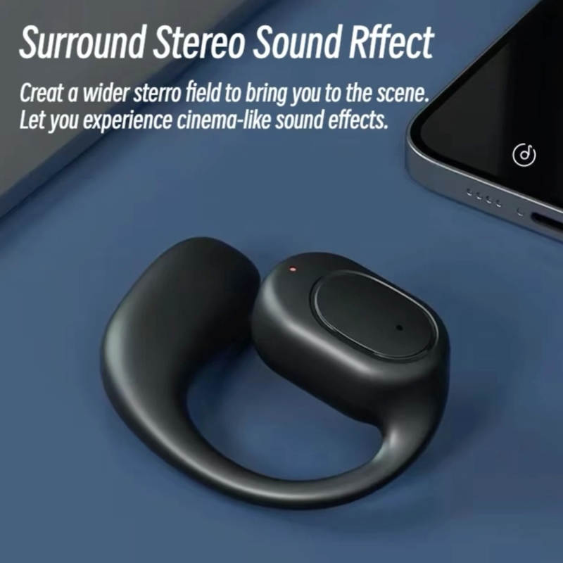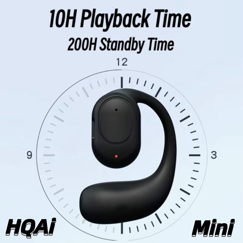 HQAi OWS Single-ear Earbuds Bluetooth Wireless Earphone True Bass Stereo Big Capacity Battery with 10H Playback Time, Touch Control On Ear Business Sport Music Headset