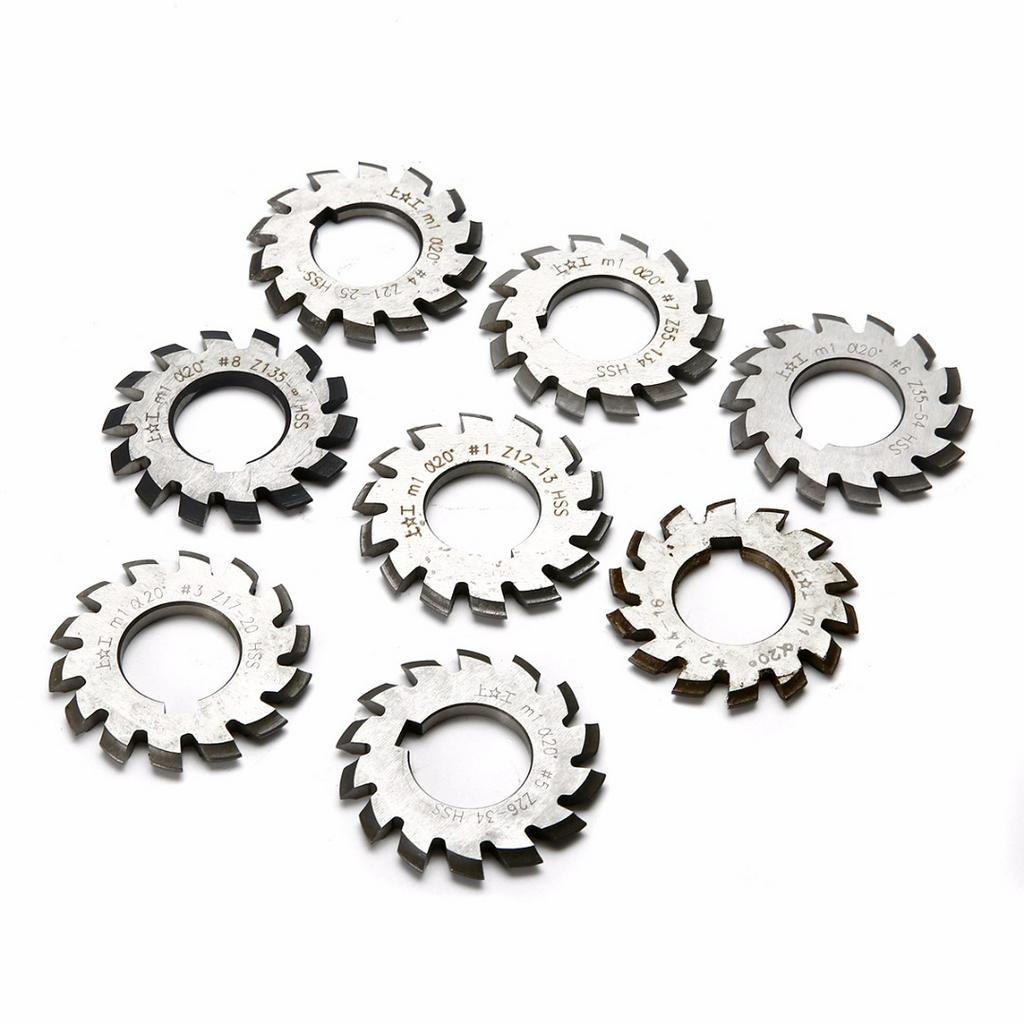 HSS Involute Gear Cutters Set M1 Module PA 20 Degree #1-8 Assortment Kit For Power Tools