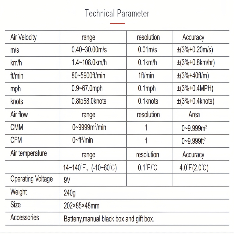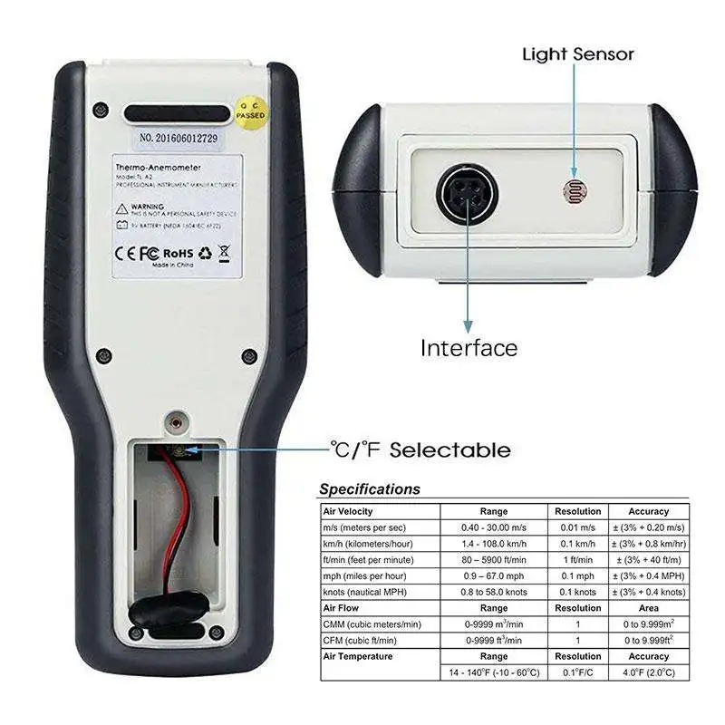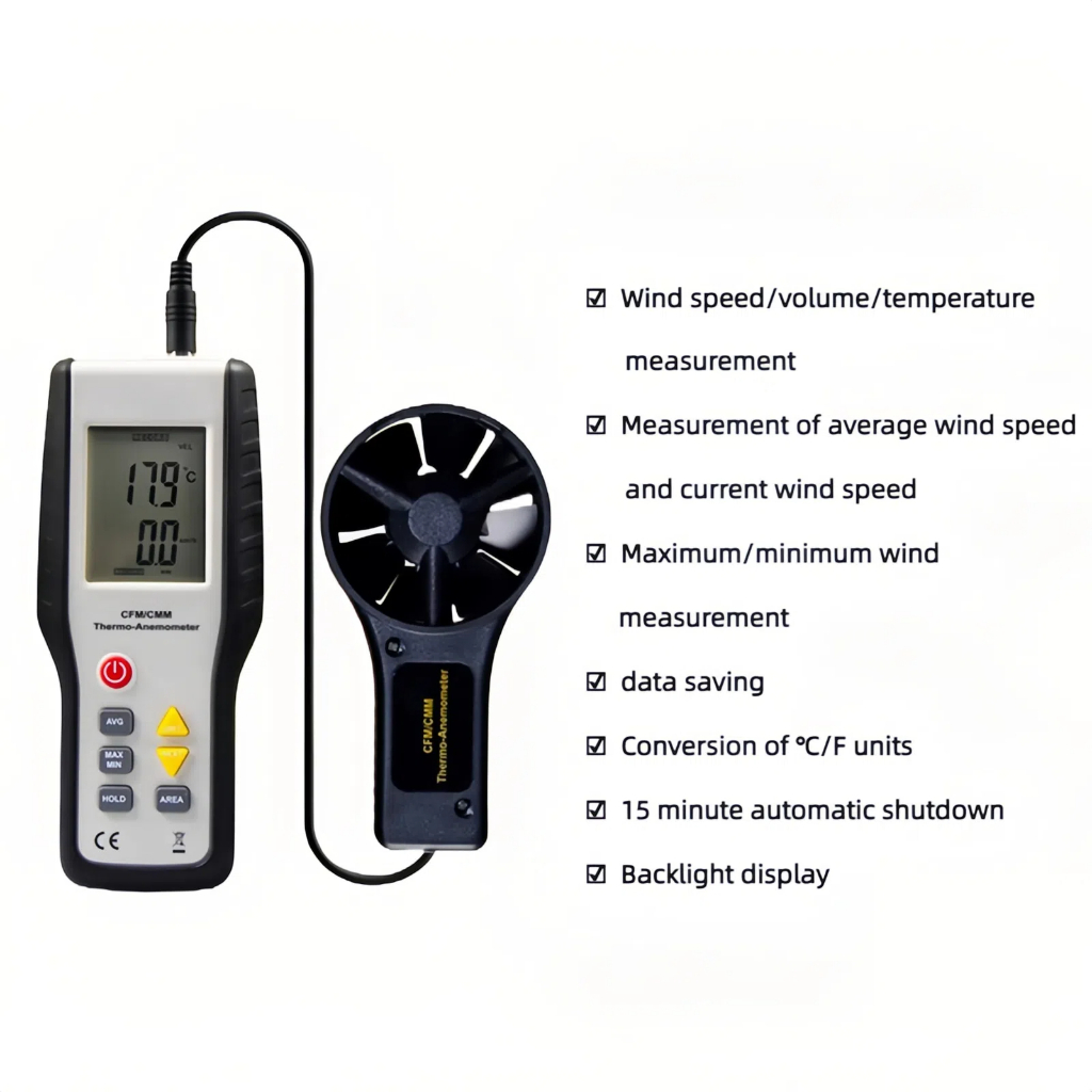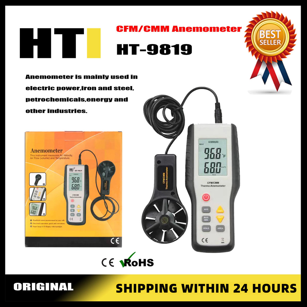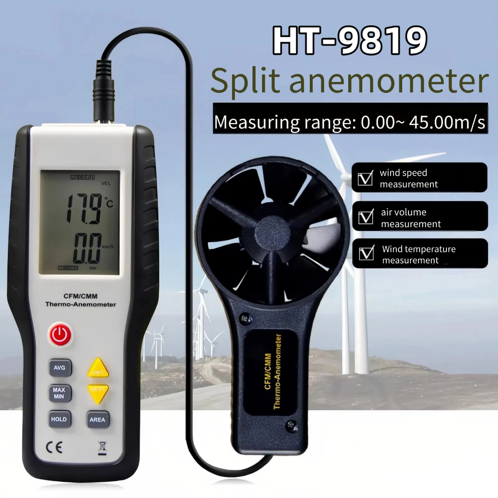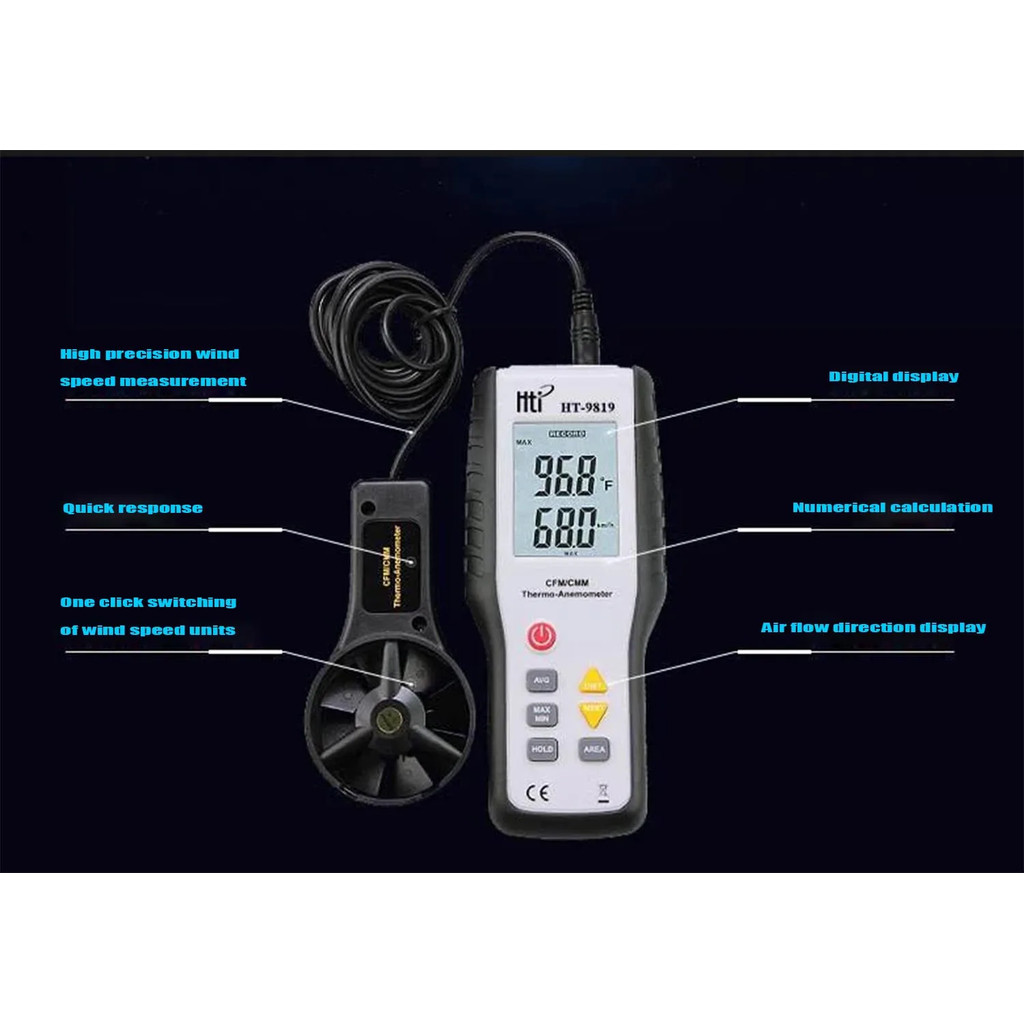 HTI HT-9819 CFM/CMM Digital Thermo Anemometer, Vane Split Type Air Flow Meter, Wind Speed Gauge
