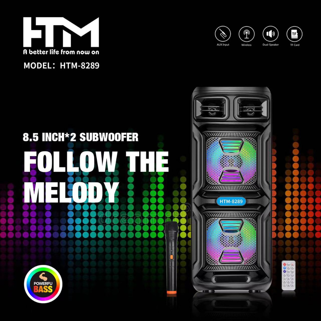 HTM-222 2X8 inches Portable Bluetooth Wireless Speaker Karaoke with Remote and Mic