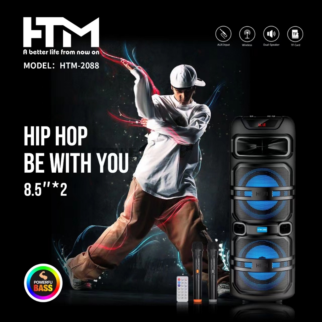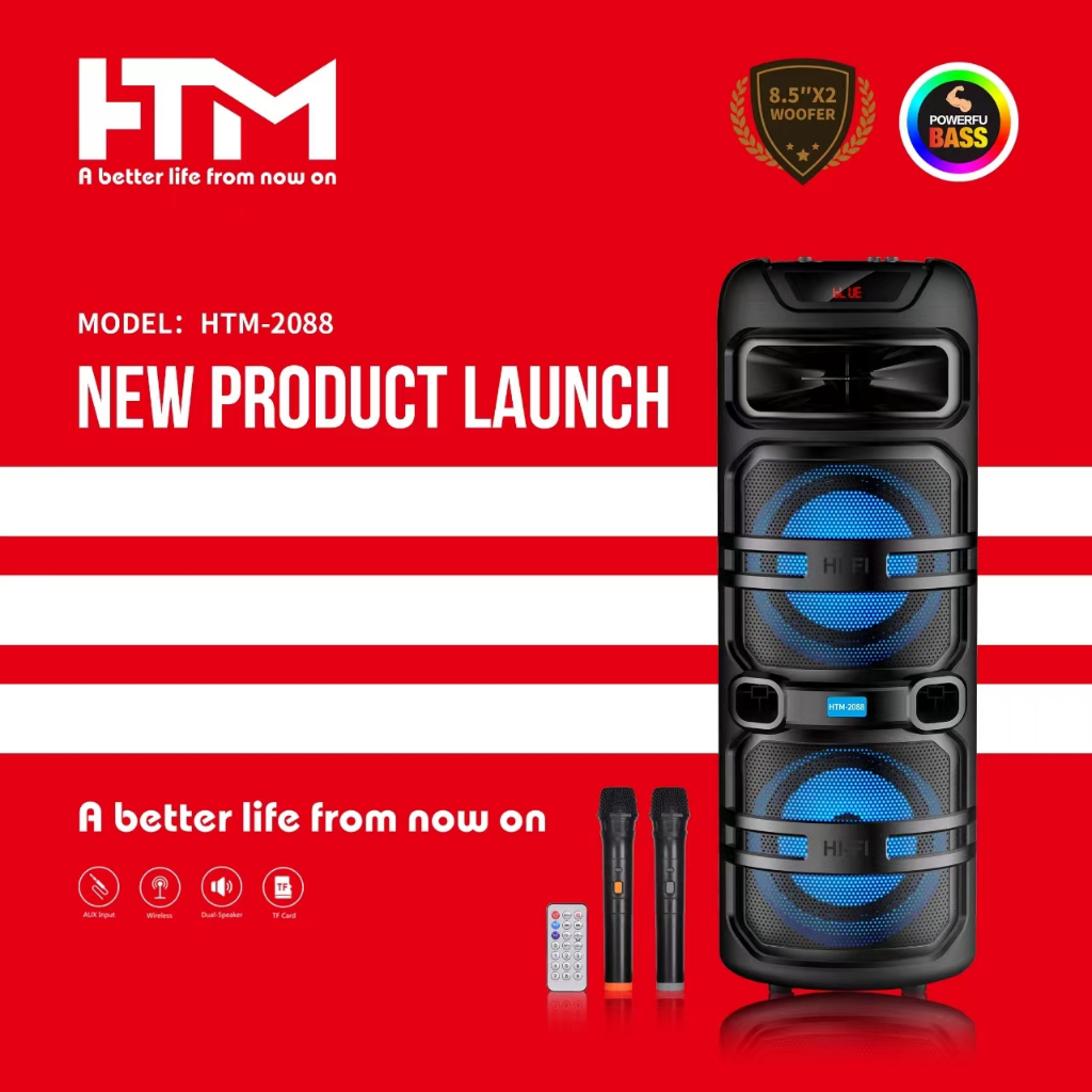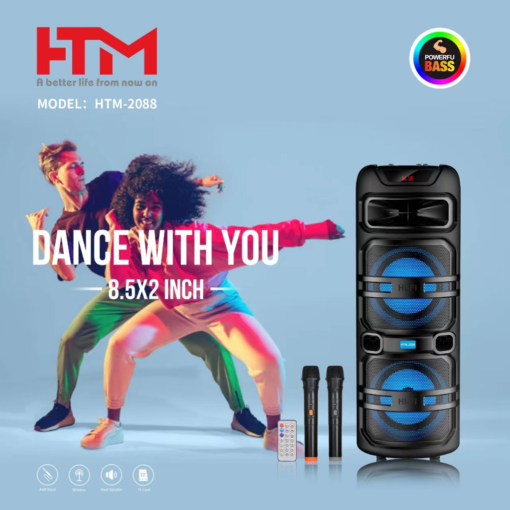 HTM Portable Party Karaoke Outdoor RGB LED Light Dual Subwoofer Bluetooth Wireless 17-inch Speaker