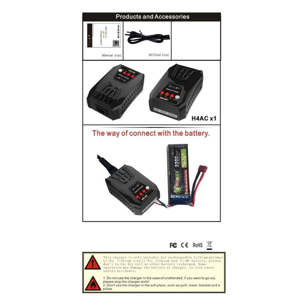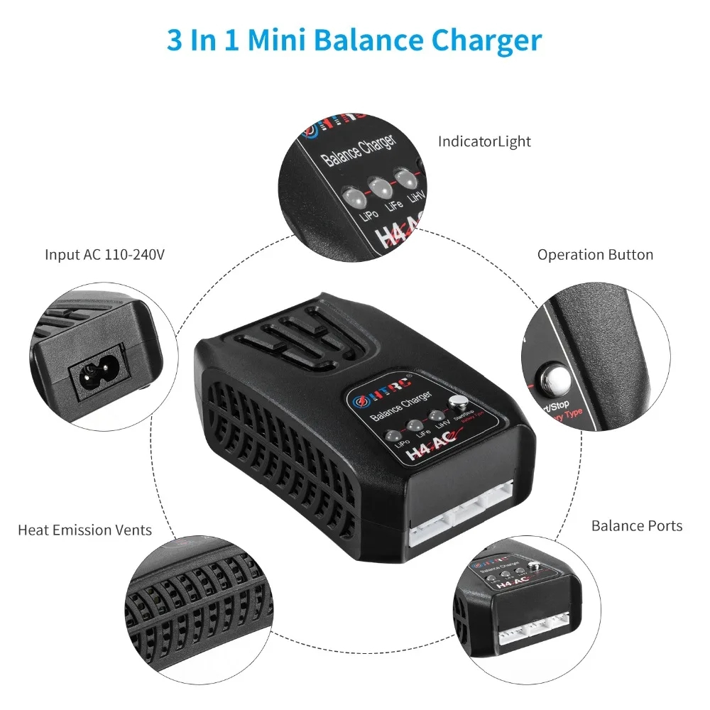 HTRC H4AC 20W 2A Lipo Battery Blance Charger For 2-4s Lipo LiFe LiHV Battery Pocket Type RC Charger with Warranty