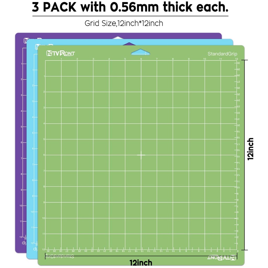 HTVRONT 3 Pcs Cutting Mat Mix Cut Light Strong Grip Standard 12"x 12"/30cm x 30cm For Cricut Explore Air 2/Air/One/Maker Adhesive Sticky Quilting Mats Replacement Accessories