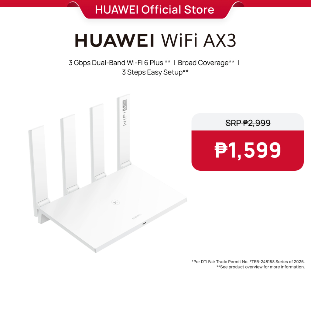 HUAWEI WIFI AX3 Router (Dual-Core) | 3 Gbps Dual-Band Wi-Fi 6 Plus | Broad Coverage
