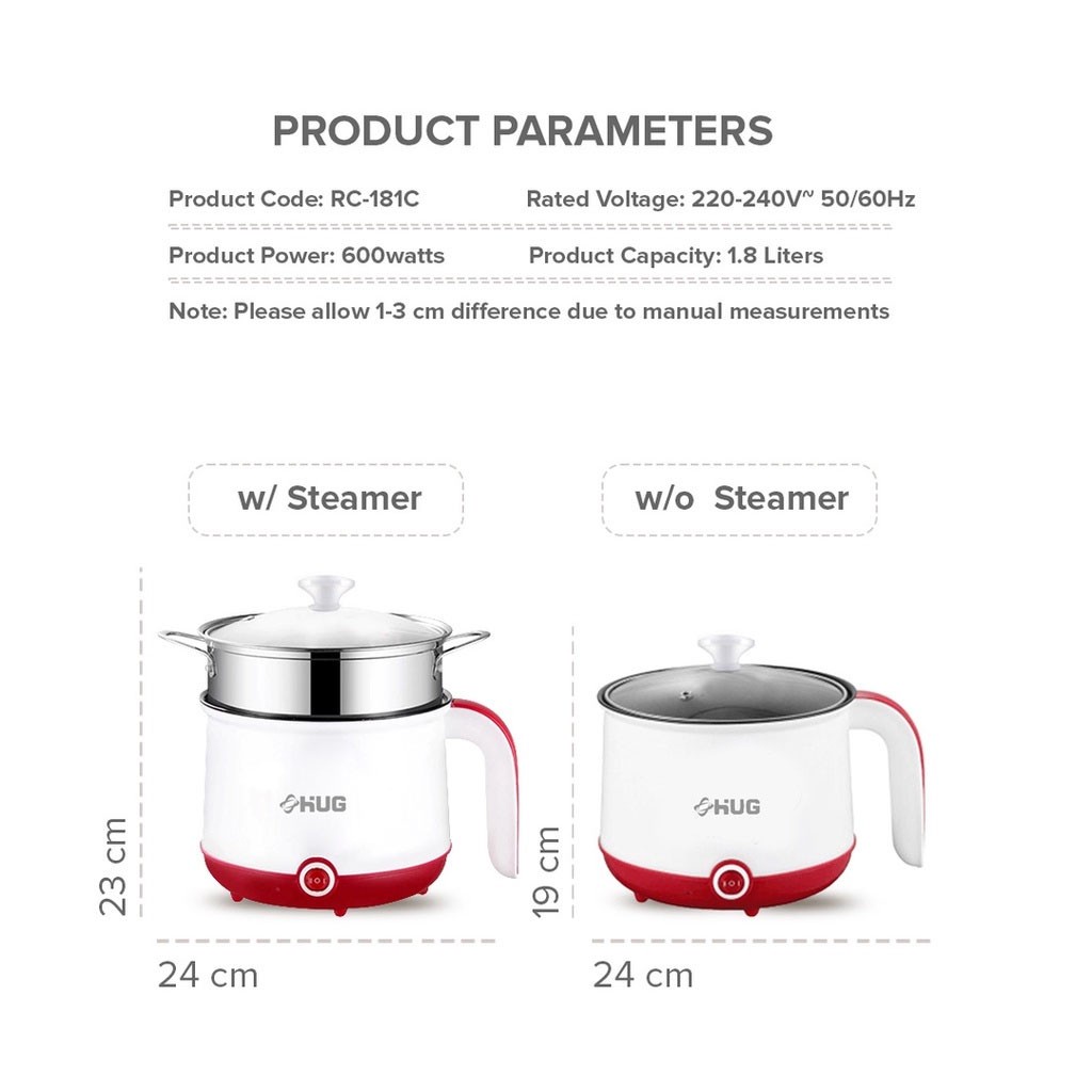 HUG Mini Rice Cooker, 1.8L Multi-function Cooker Non-Stick Inner Pot With Steamer RC-181D