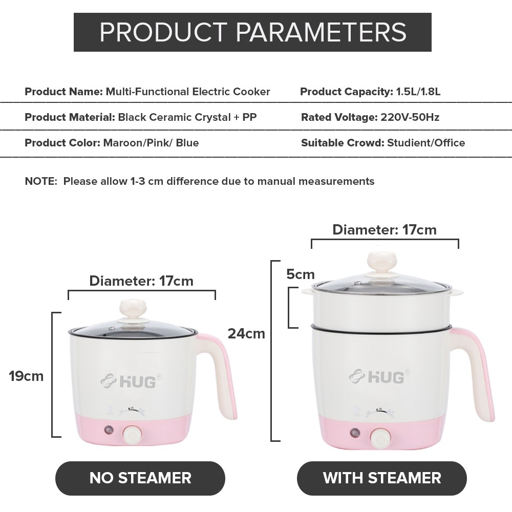 Hug Multifunctional Non-Stick Electric Steamer Rice Cooker Frying Pan Wok Cup Type - Rc-181B