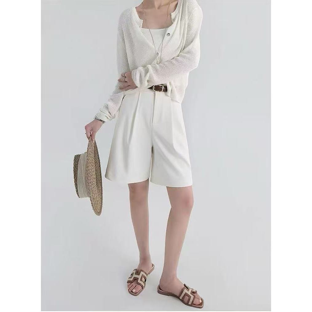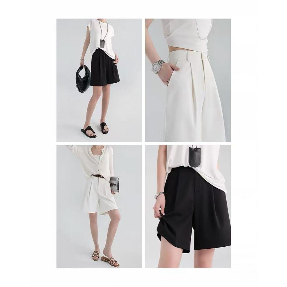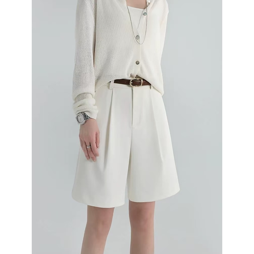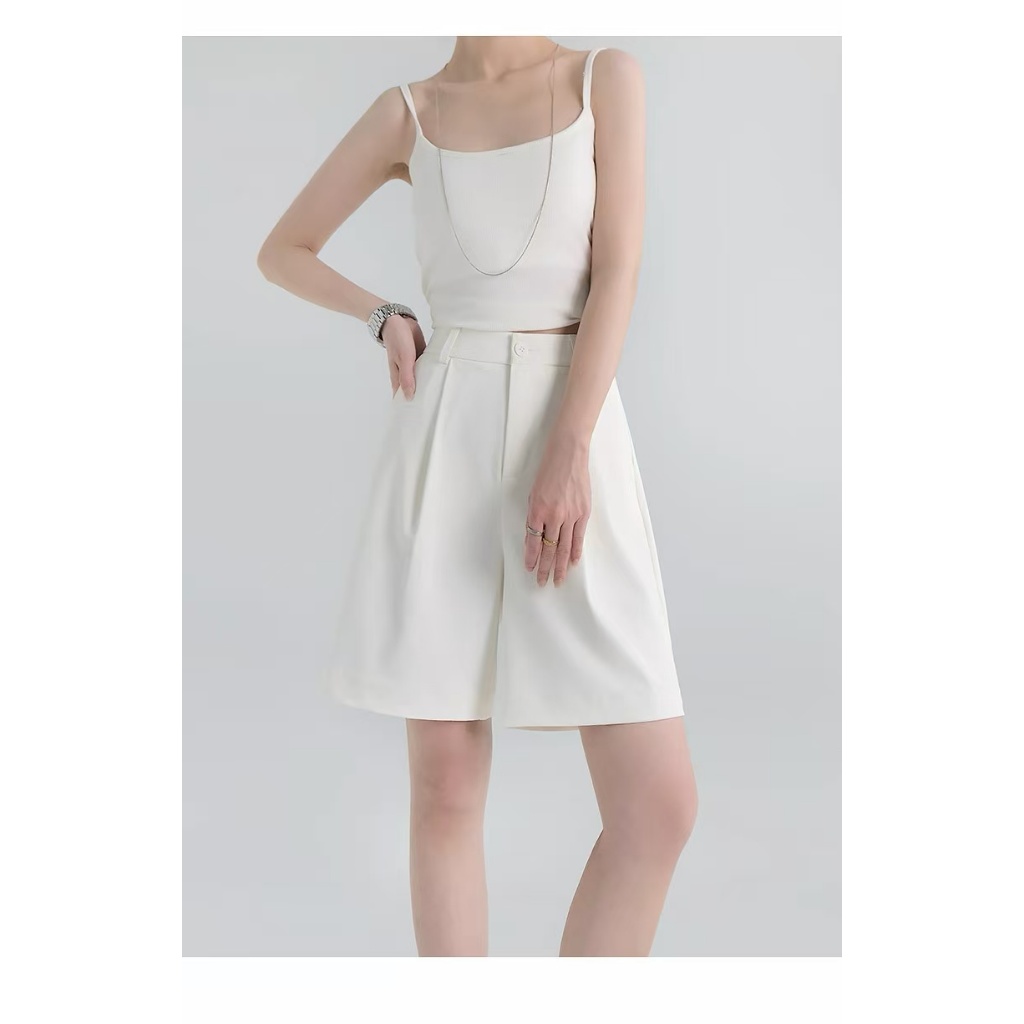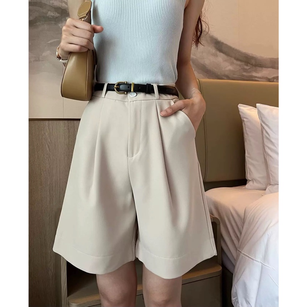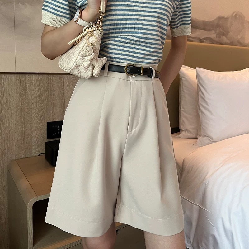 HUILISHI High Rise Pleated Jorts for Women Korean Trouser Shorts Gartered Back Waist with Garter