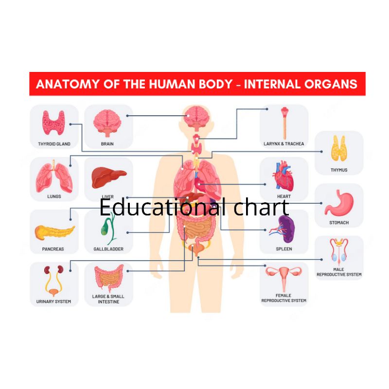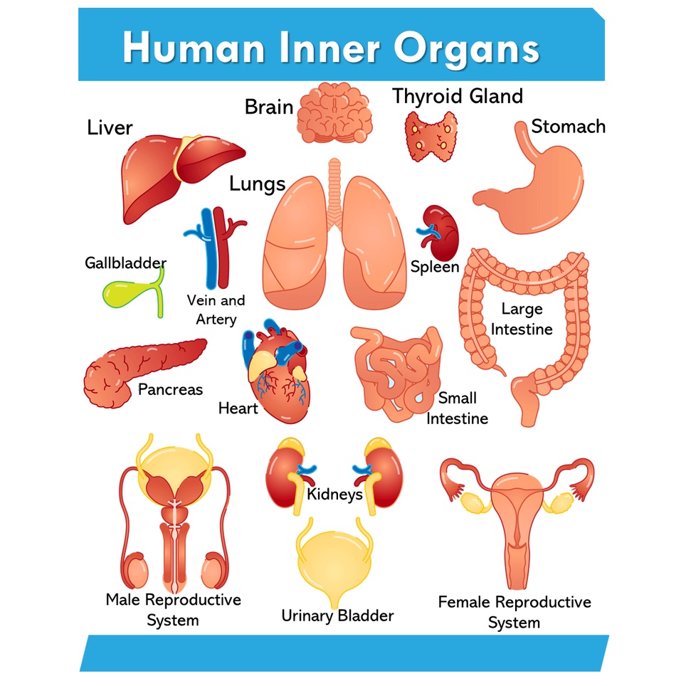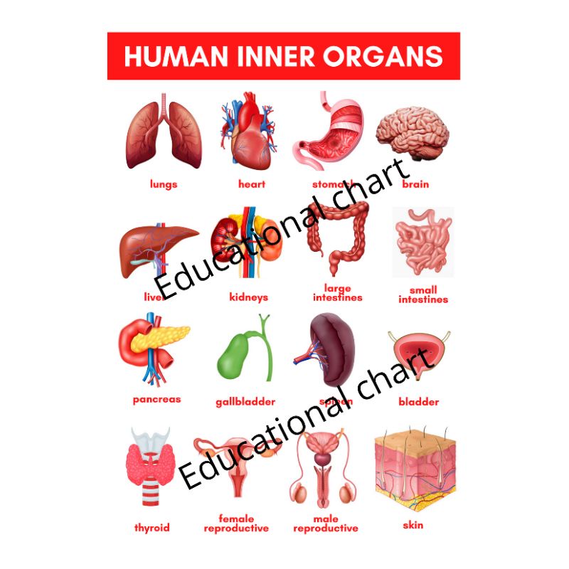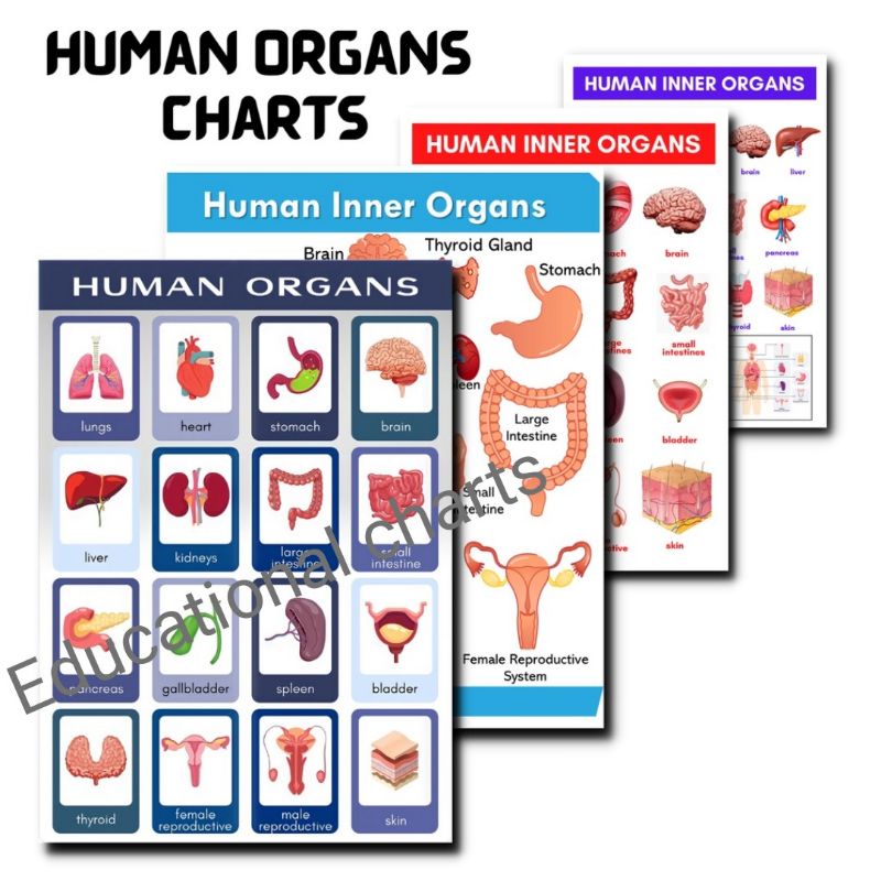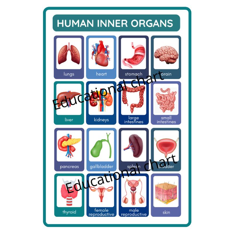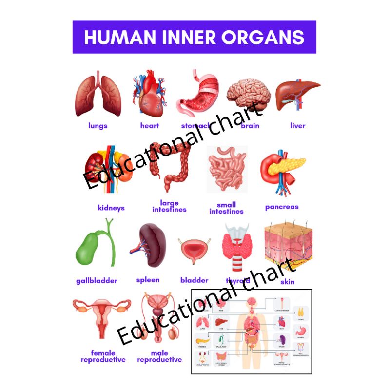 HUMAN INNER ORGANS POSTER, Educational laminated chart for kids