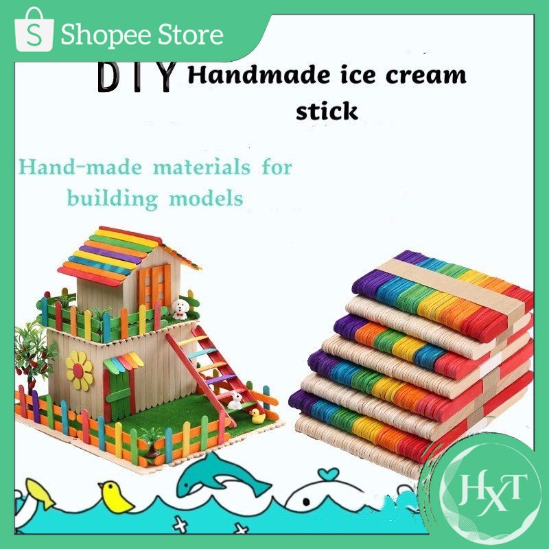HXT Colored/Natural Wooden Popsicle Stick Ice Cream Sticks Arts & Crafts/Popsicle Sticks/WoodenStick