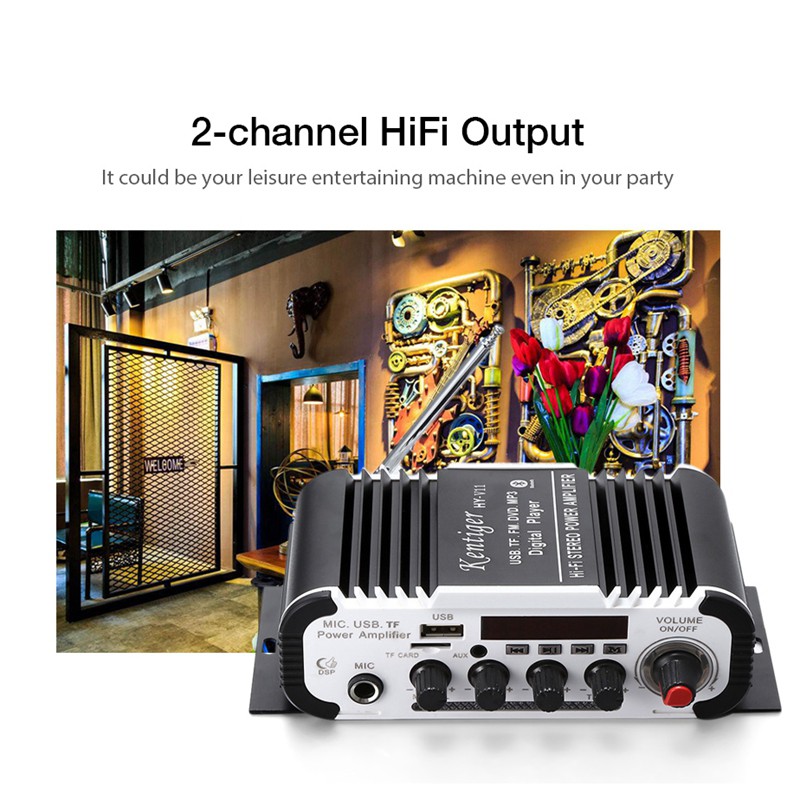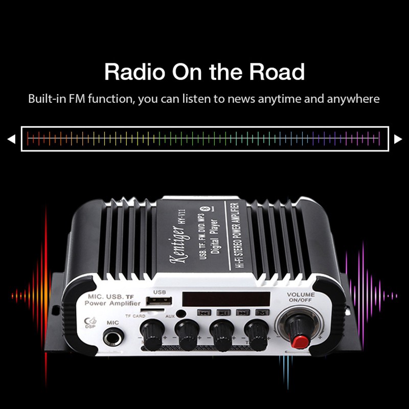 HY-V11 Mini Amplifier 12V/5A FM DVD CD MP3 EDR Bluetooth 5.0 Stereo Audio Amplifier Power Amplifier Car Home With Remote Control Manual