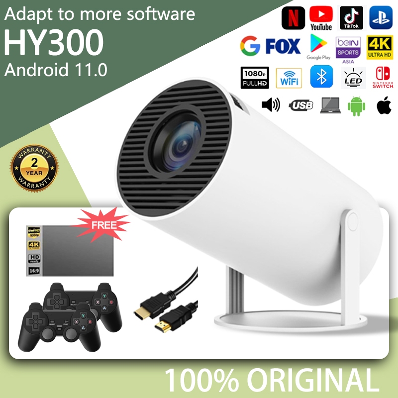 HY300 Smart Projector Ultra HD Portable Mini WiFi BT Android Wireless Connection to Mobile Phone