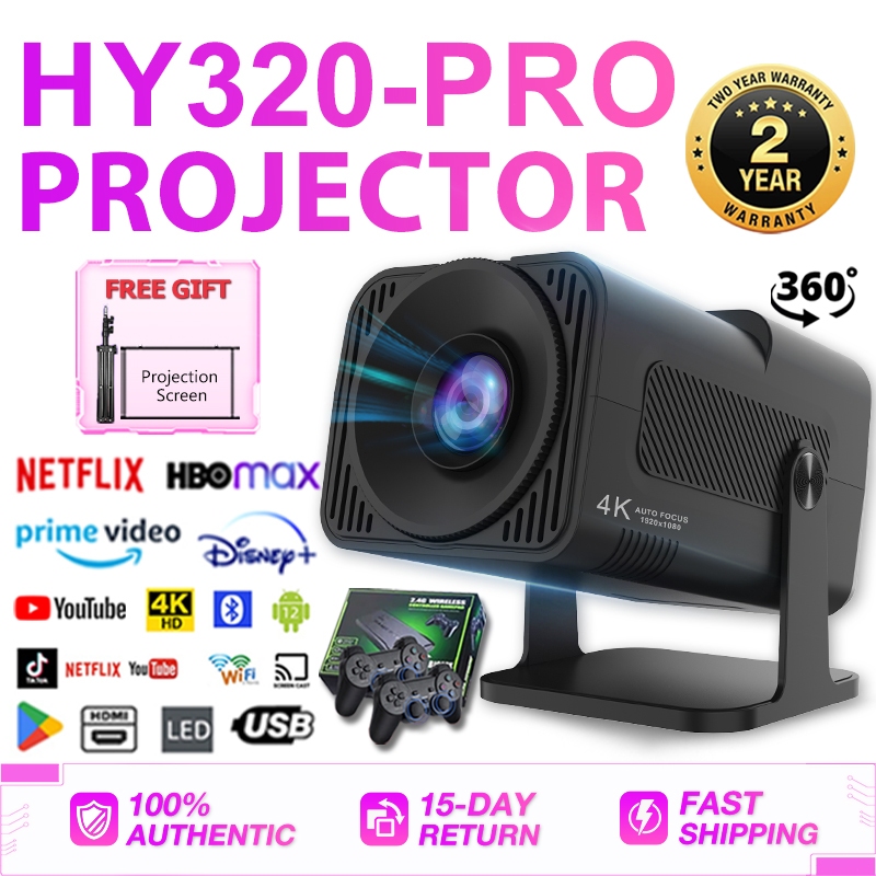 HY320 Smart Projector 4K FHD 1080P Mini Projector Portable Projector for phone with WiFi Bluetooth
