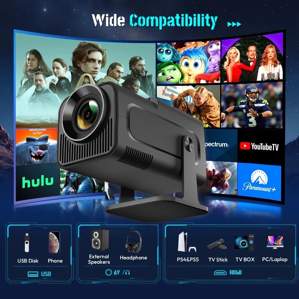 HY320 Smart Projector Portable Auto Calibration WiFi Bluetooth Android Wireless Connection Phone GL