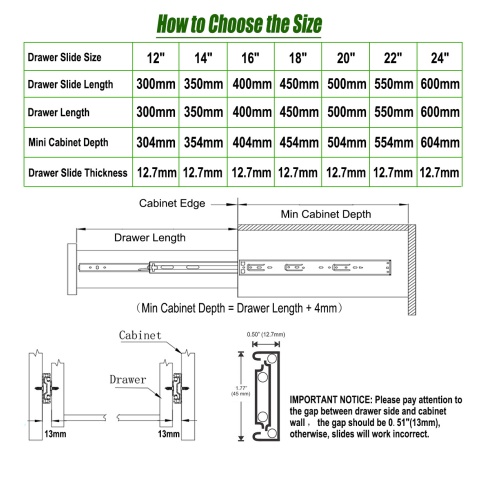 HYDROLIC PUSH OPEN Drawer guide Full Extension Steel 3 Fold , 8inch to 24 inch