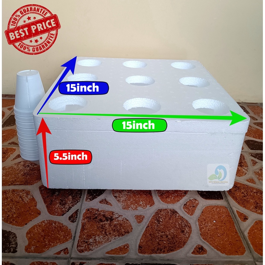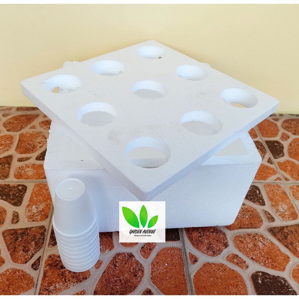 HYDROPONICS 9 HOLES GROW BOX - WITH 9 PCS. STYRO CUPS (WITH SLIT) - HEAVY DUTY!!!