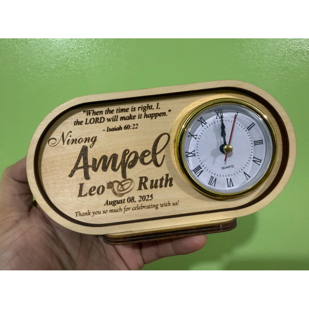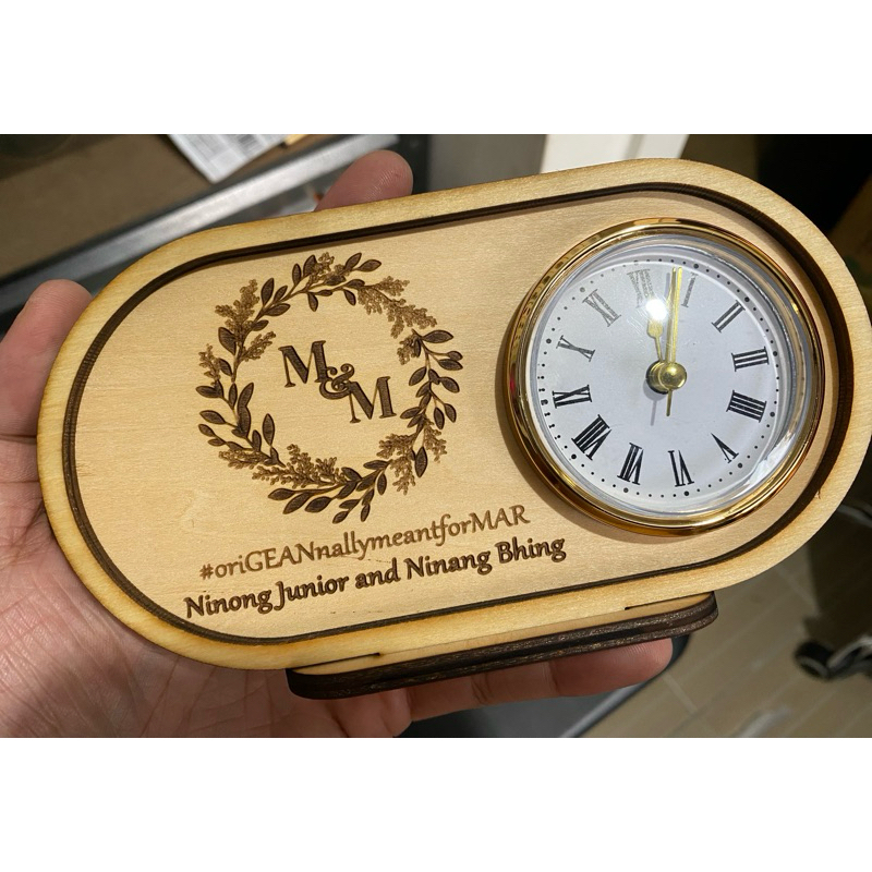 Hagabi Produkto Personalized wooden desk clock with engrave