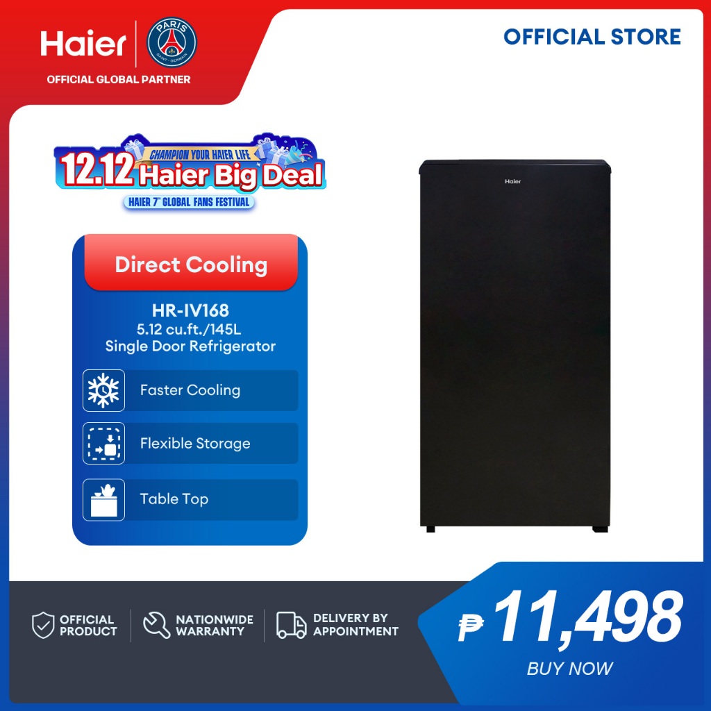 Haier HR-IV168 5.12 cu.ft./145L Inverter Single Door Refrigerator (Dark Silver)