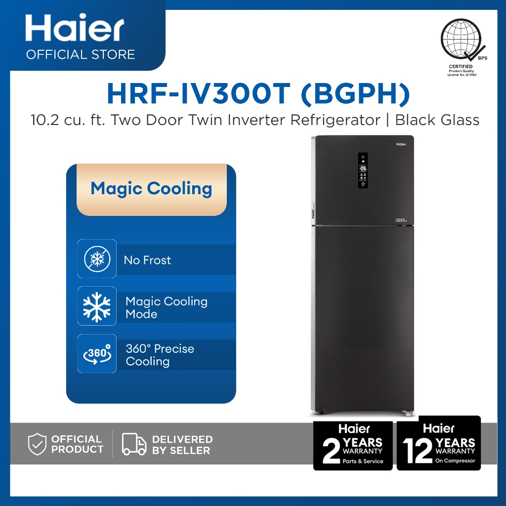 Haier HRF-IV300T (BGPH) 10.28 cu.ft./291L No Frost Twin Inverter Two Door Refrigerator (Black)