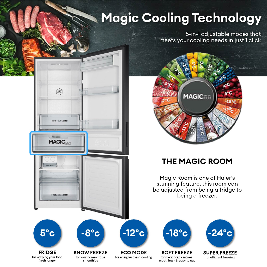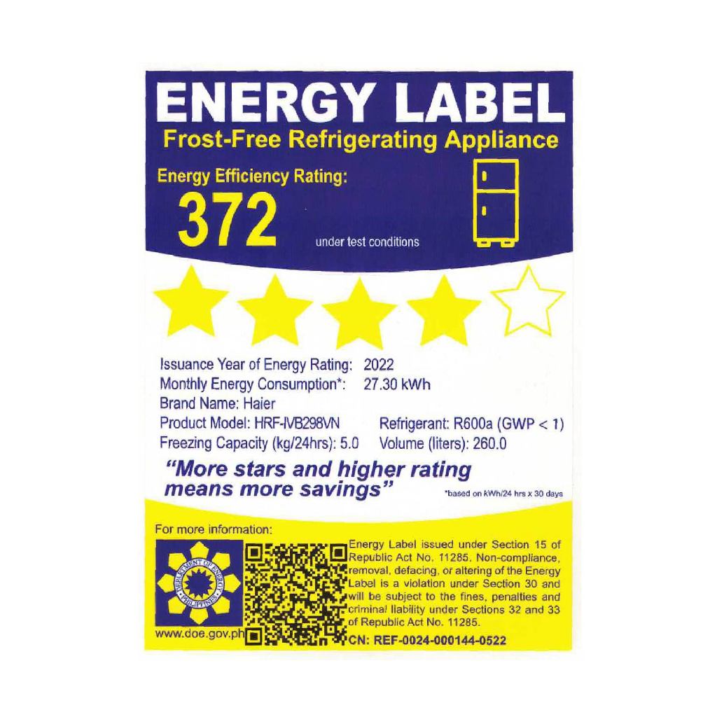 Haier HRF-IVB298VN (BG) 9.18 cu.ft./260L No Frost Twin Inverter Refrigerator (Black Glass)