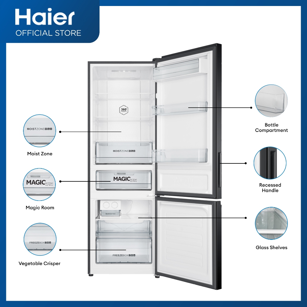 Haier HRF-IVB338VN (BG) 10.31 cu.ft./292L No Frost Twin Inverter Two Door Refrigerator (Black Glass)