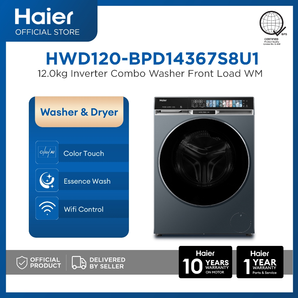 Haier HWD120-BPD14367S8U1 12/7 kg Color AI Front Load Inverter Series Washer & Dryer Combo Fully Aut