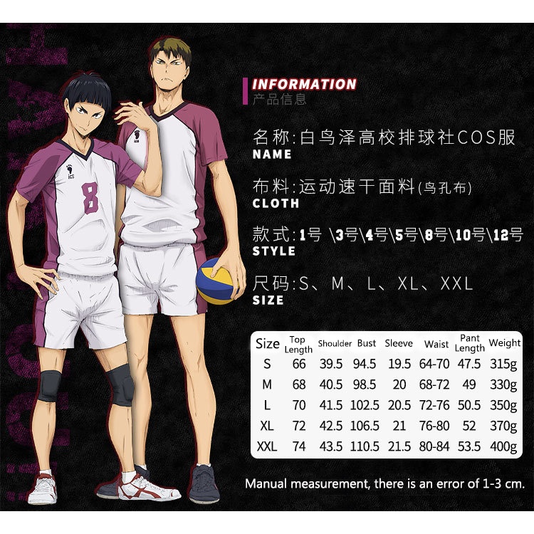 Haikyuu Cosplay Jersey Shiratorizawa Academy Uniforms Wakatoshi Ushijima Eita Semi Satori Tendo Satori Sportwear Sets
