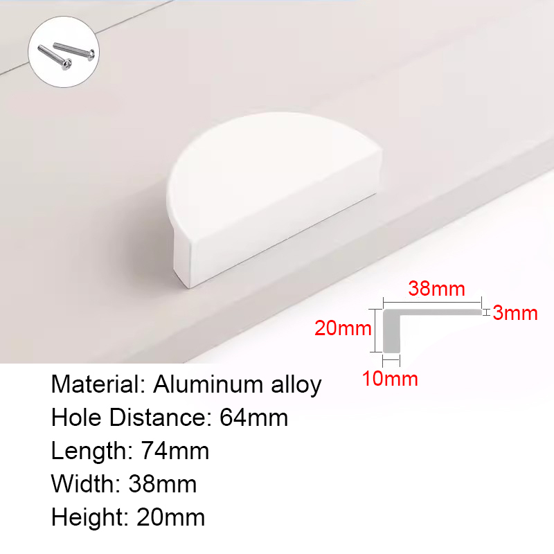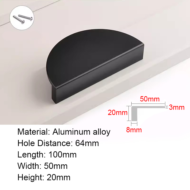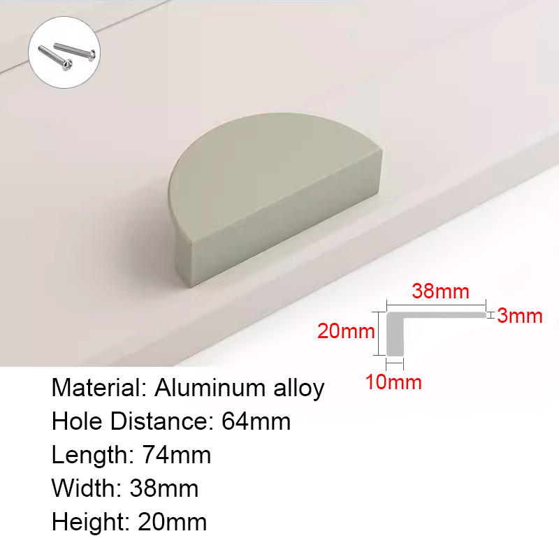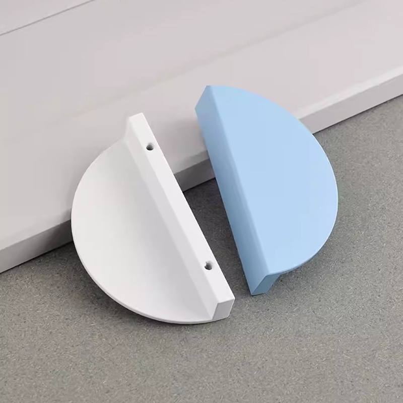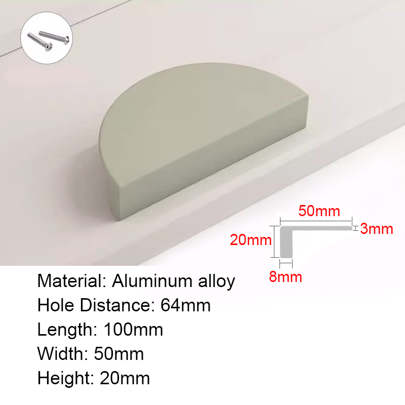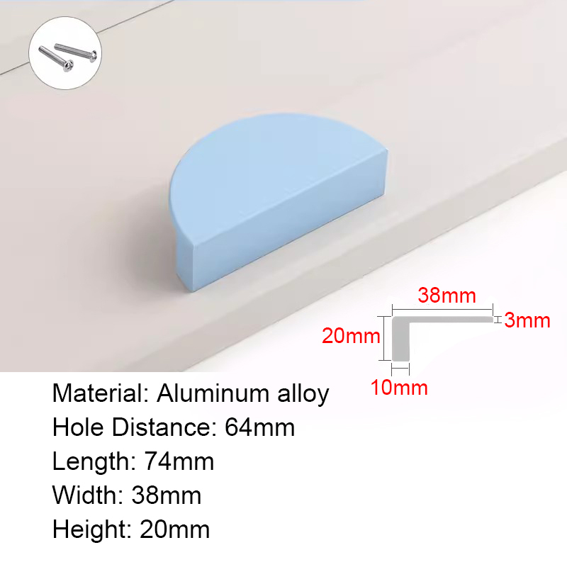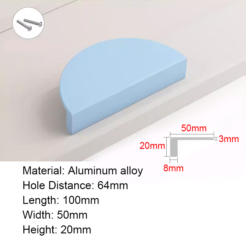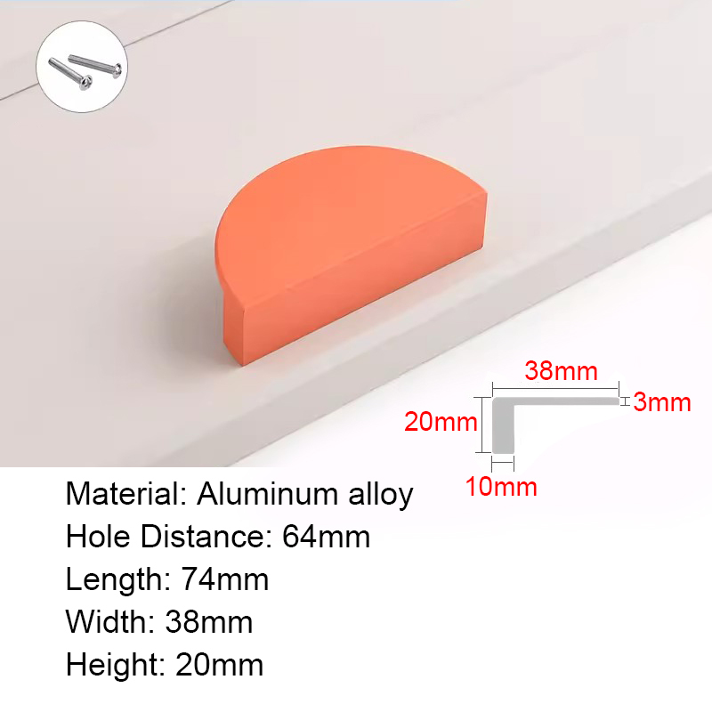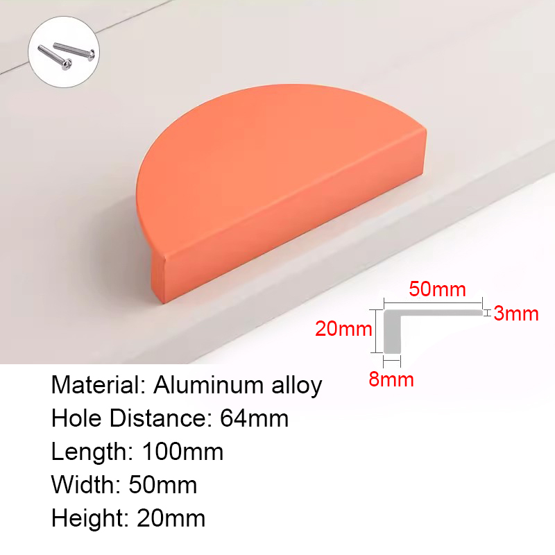 Half Moon Aluminum alloy Cabinet Handles Colorful Door Pull Kitchen Cupboard Drawer Dresser Knobs Black White Gold Pink Green Blue Orange Wardrobe Semicircle Furniture Handles