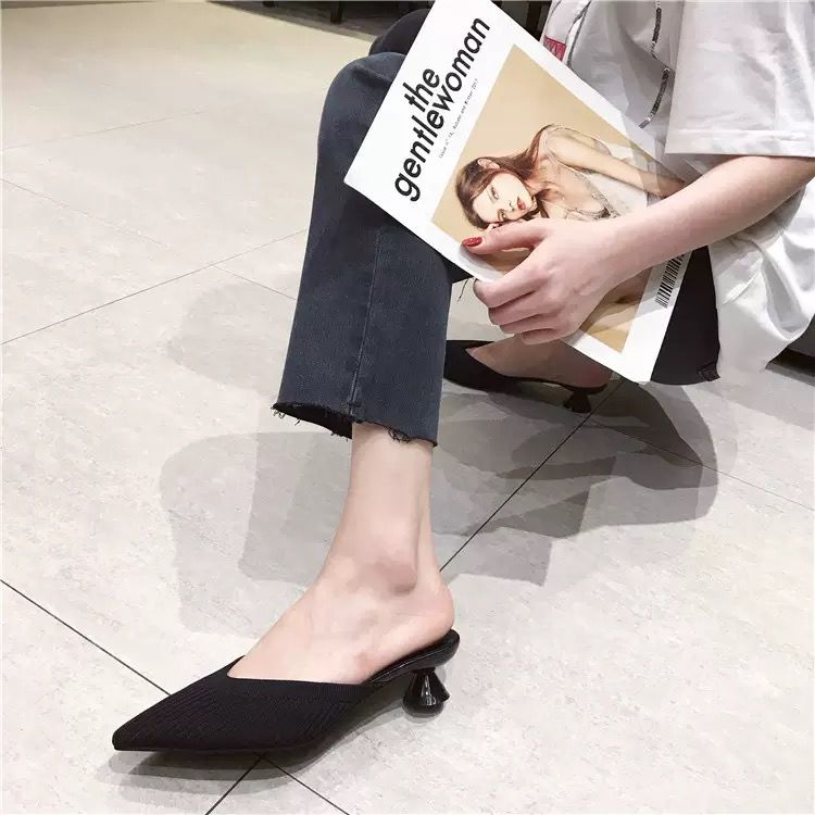 Half skates female wear 2020 summer new knit thick with sharh drafclo Hong Mul shoes wearing