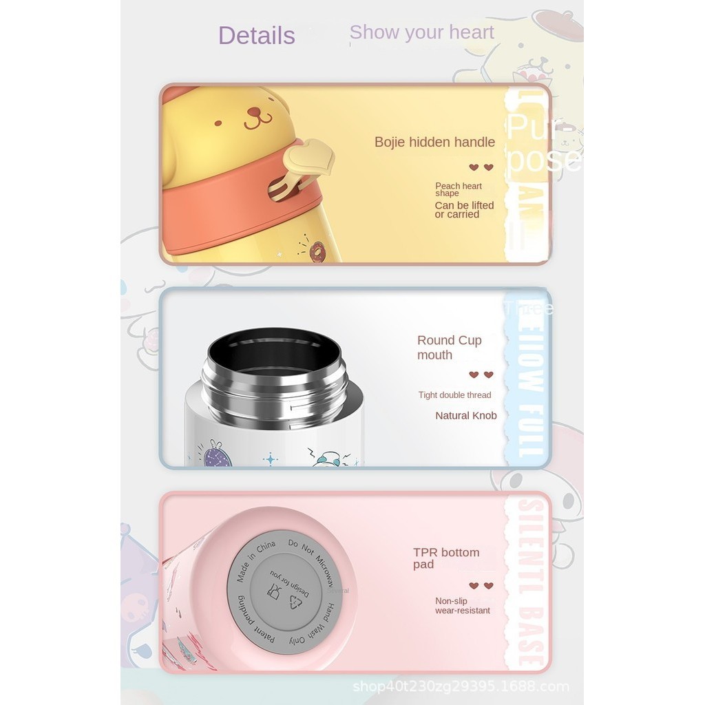 New Sanrio 316 stainless steel insulated cup cute cartoon kuromi melody Cinnamoroll for student and kids water bottle