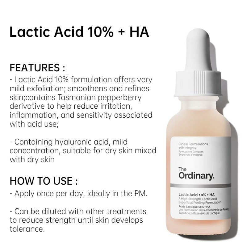 Lactic Acid 5% + 10% + HA Gentle Exfoliating Acne Spot Treatment Serum Glass Skin 30ML