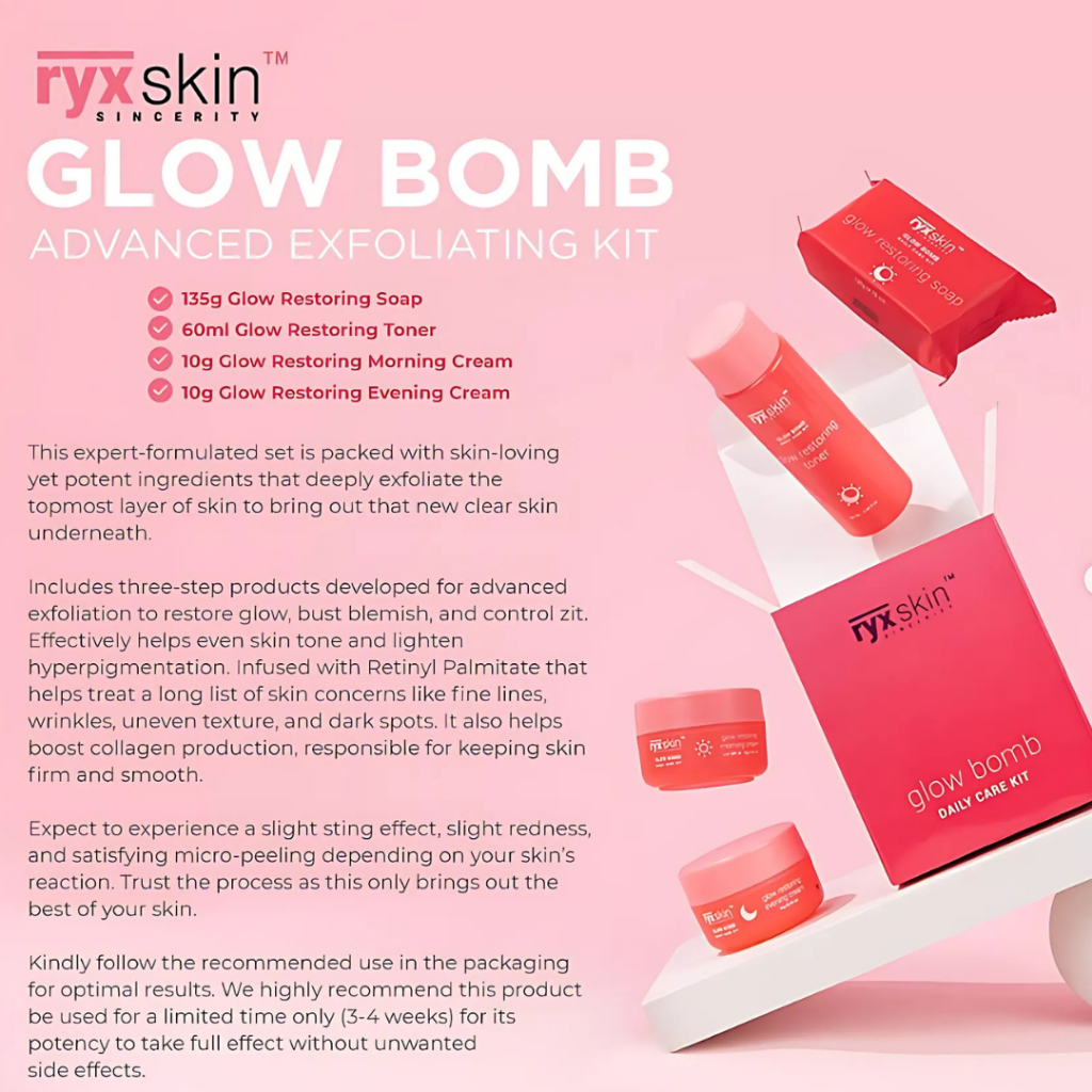 RyxSkin Glow Bomb Daily Care Kit | Beyouthiful Power Kit | Radiant Boost Clarifying Set | Pore Care
