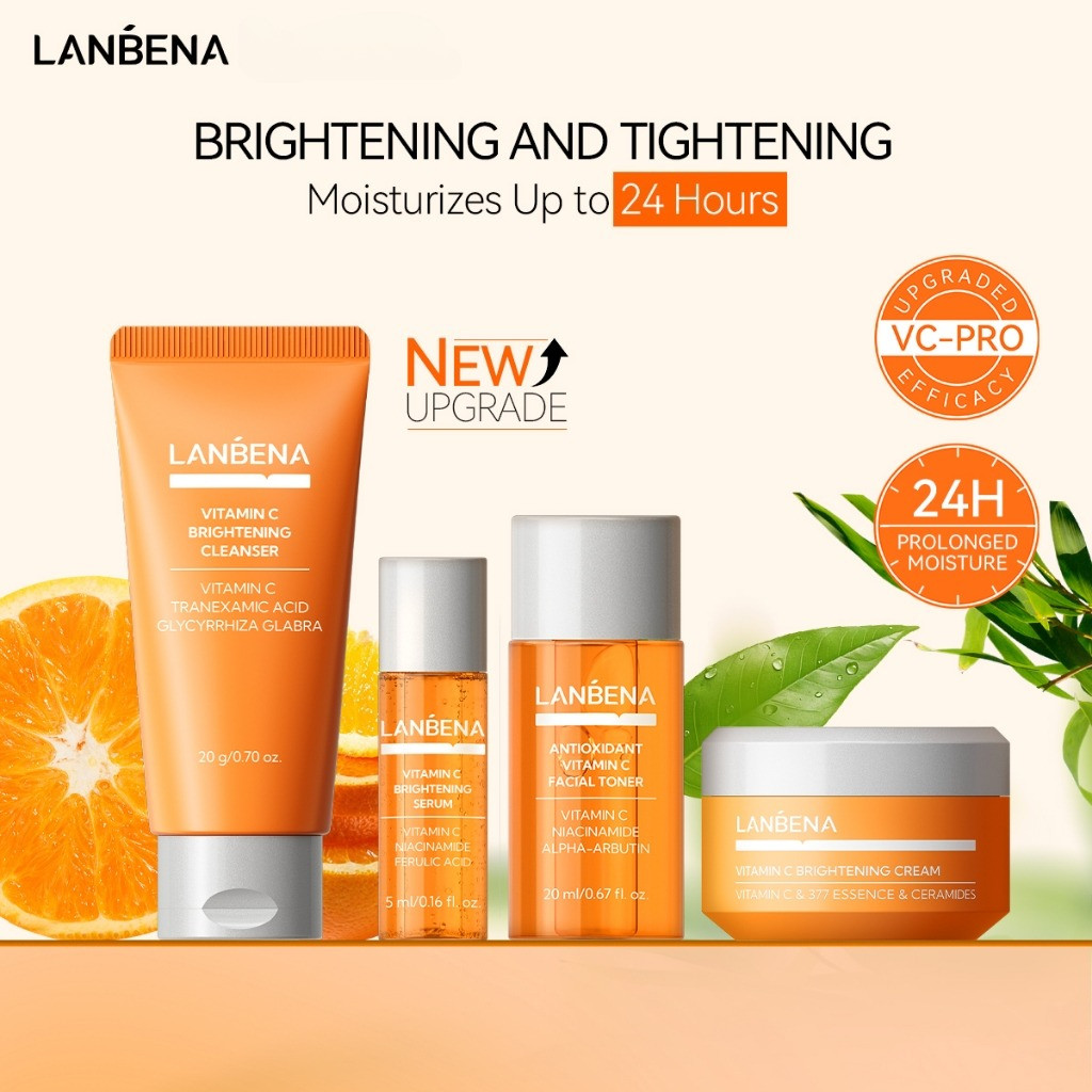 LANBENA Vitamin C Serum Whitening Cream Moisturizer Cream Brightening Facial Set Oil Control Niacinamide Face Cream Acne Removal Rejuvenating Skincare 4PCS 【Travel Size Kit】
