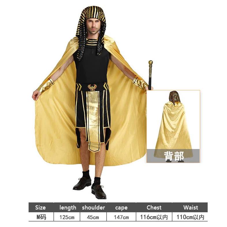 Halloween Ancient Egypt Egyptian Pharaoh Costume for Men King Cleopatra Queen Cosplay Carnival Party Medieval Couple Party Dress With Headwear With Cloak