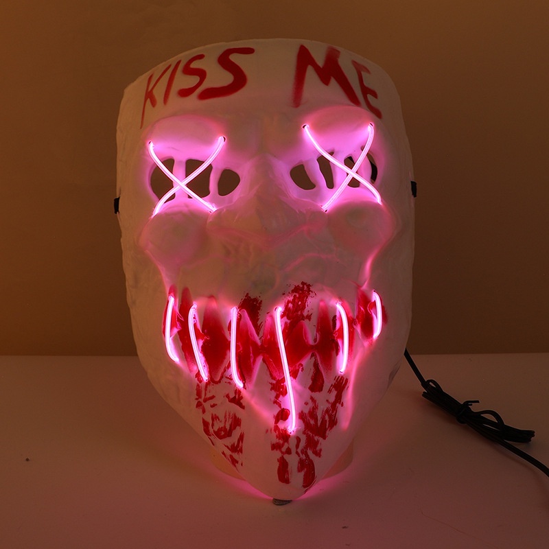 Halloween Depointer Scary Halloween Anarchy God EL Rave Party Purge Kiss Me Mask, Cosplay Led Costume Mask EL Wire Light up
