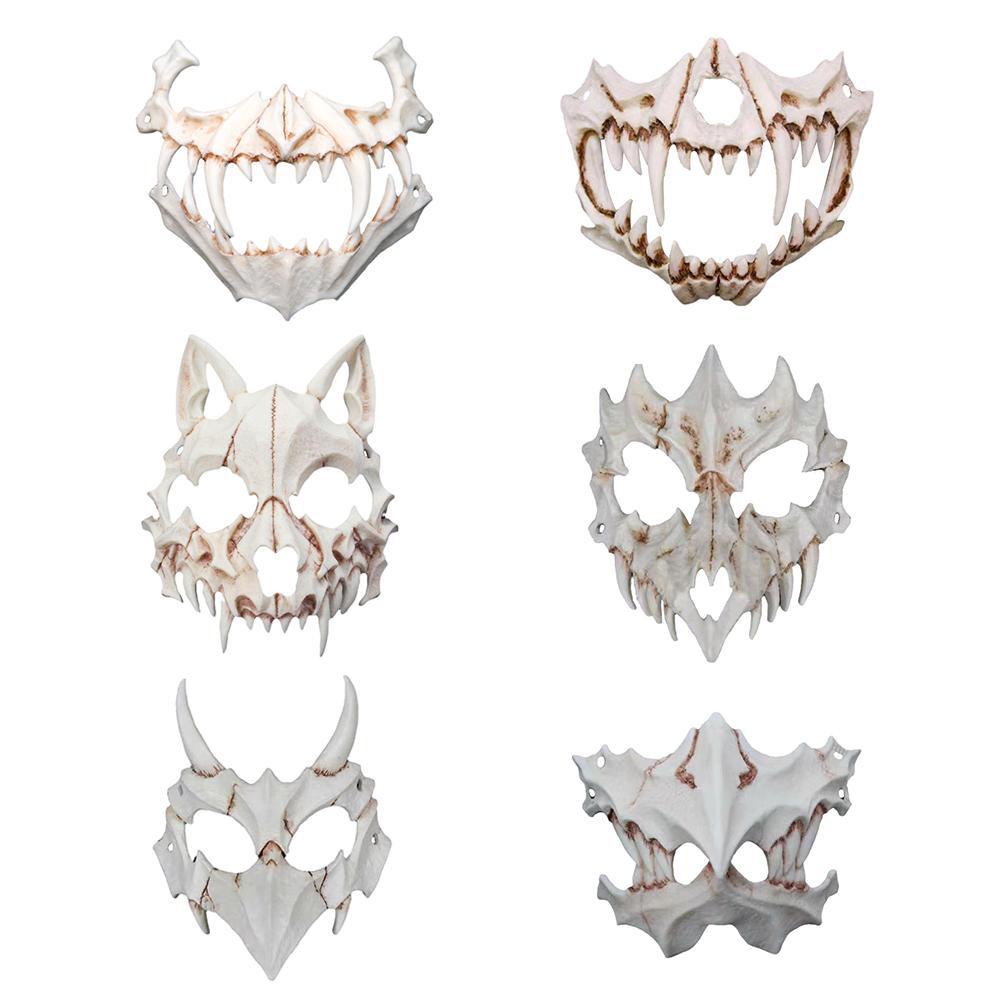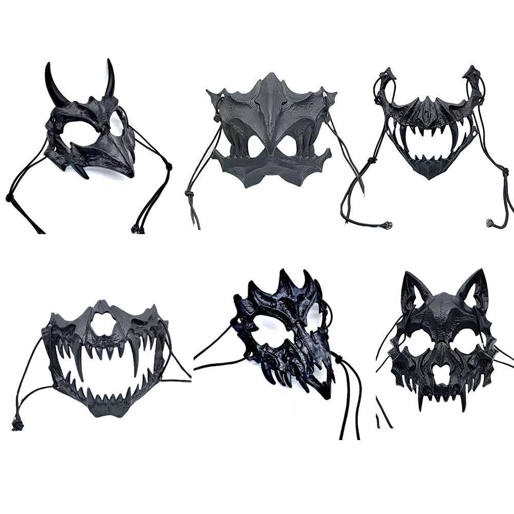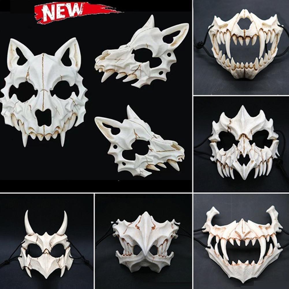 Halloween Ghost Mask Demon Samurai Dragon Bone Yasha Tengu Tiger Skull Half Face Cover Mask Masquerade Easter Cosplay Costume Prop