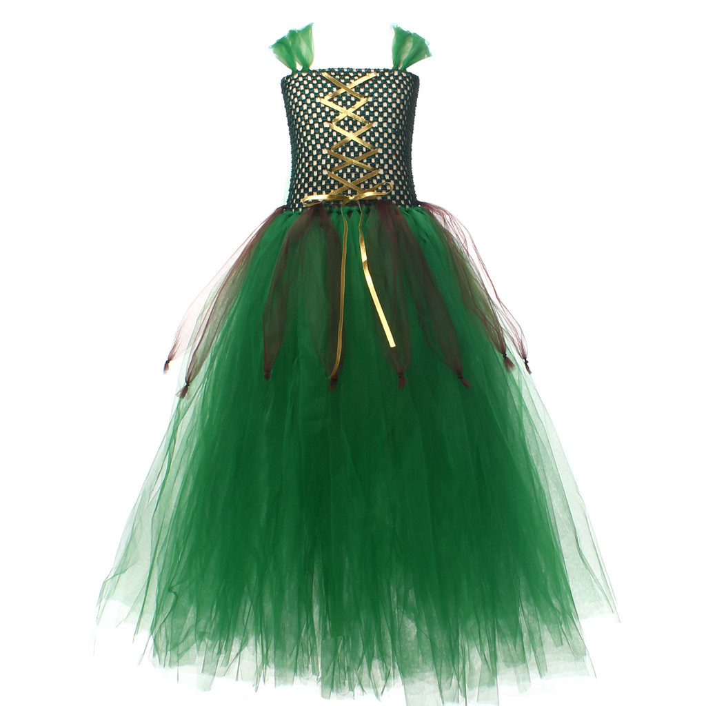 Halloween Girl Forest Elf cos Dress Dark Green Long Dress Fairy cos Dress Dress Suit