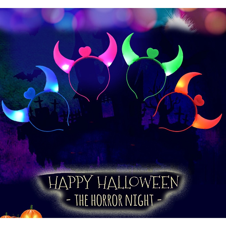 Halloween Glowing Devil Horn Headwear Flash Eyeball Headband LED Hair Hoop Flashing Glow Headband Light Up Hairbands Halloween Christmas Party Decoration