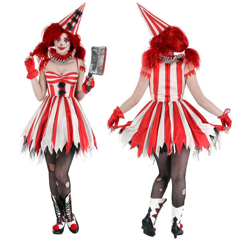 Halloween Horror Clown Cosplay Costumes Anime Cartoon Sawtooth Circus Women Clown Fancy Dress Carnival Party Stage Show Dress Up