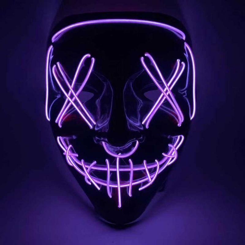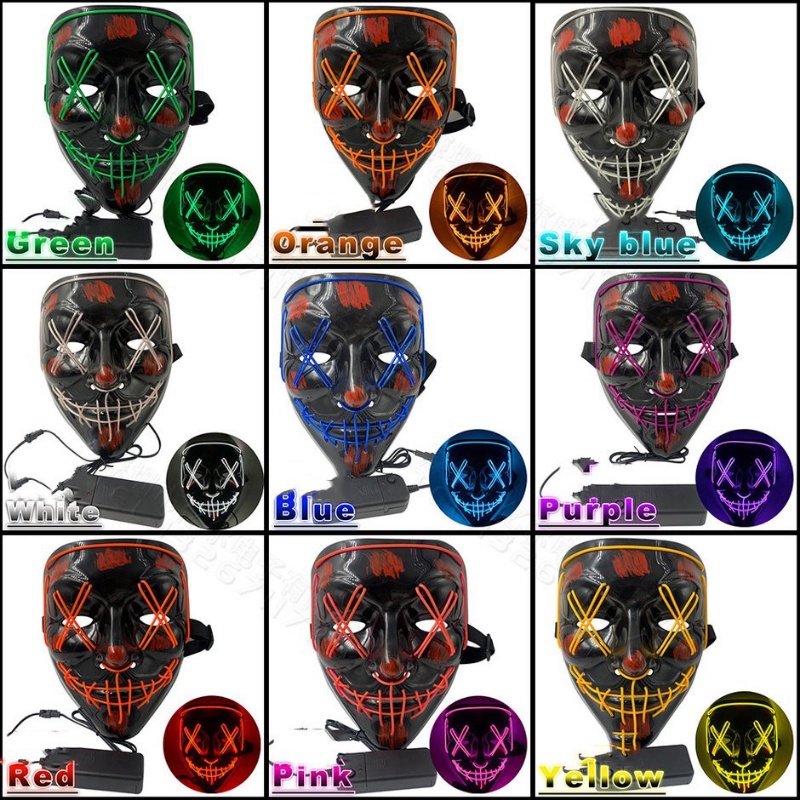 Halloween LED Mask Neon Party Luminous Light Scary The Purge Mask Glow In Dark Horror Skull Cosplay