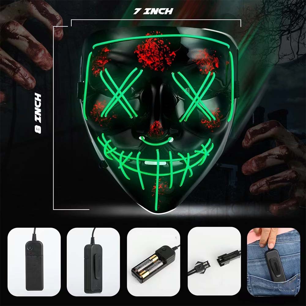 Halloween LED Mask Neon Party Luminous Light Scary The Purge Mask Glow In Dark Horror Skull Cosplay