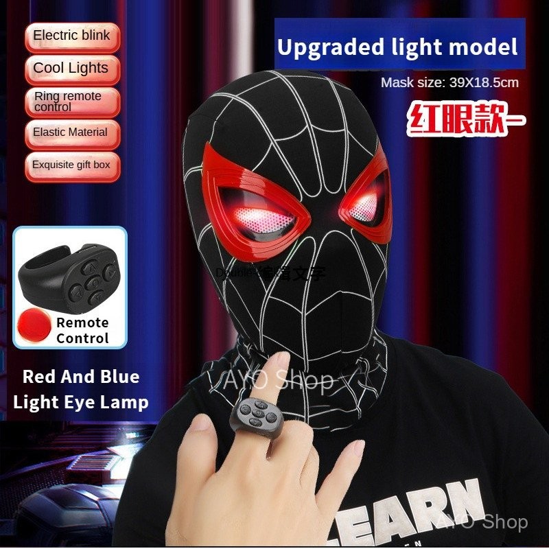 Halloween Spider-Man Headgear Electric Blinking Glowing Chin Control Blinking Mask Miles Spider-Man Helmet Mask Moving eyes Boy Gift