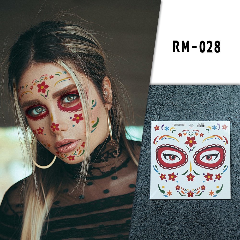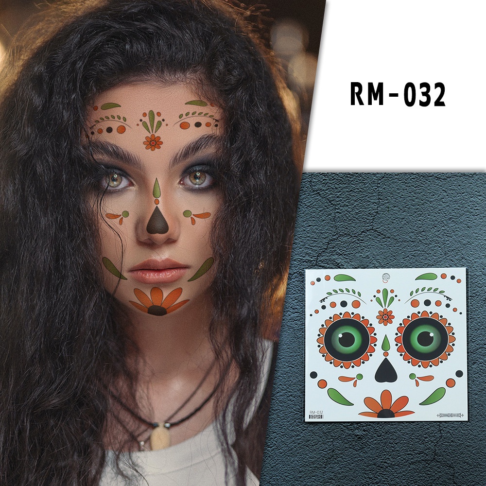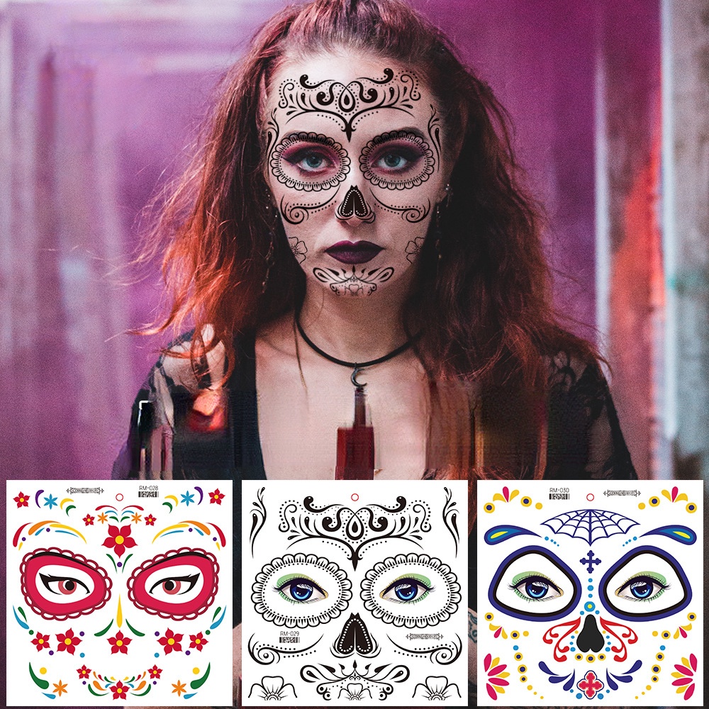 Halloween face tattoo stickers Flowers Day of the Dead waterproof tattoo paper Party makeup face stickers
